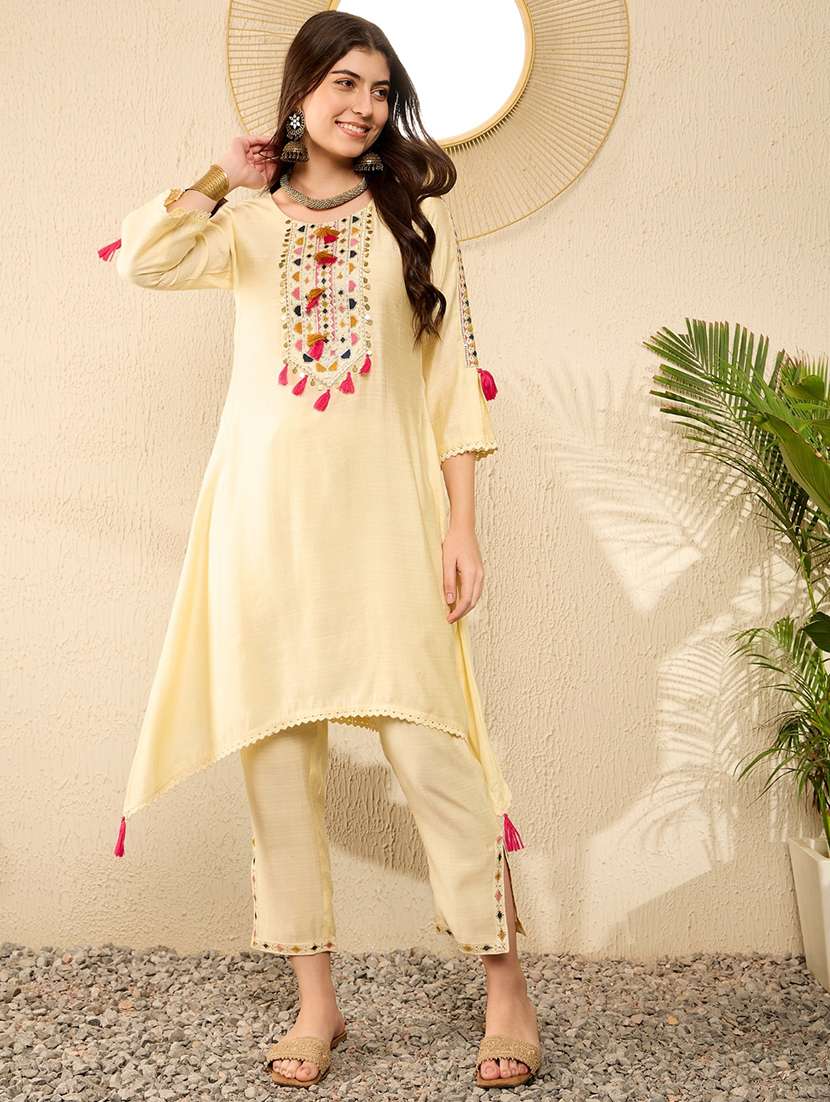 - » women embroidered three quarter sleeve kurta pant set