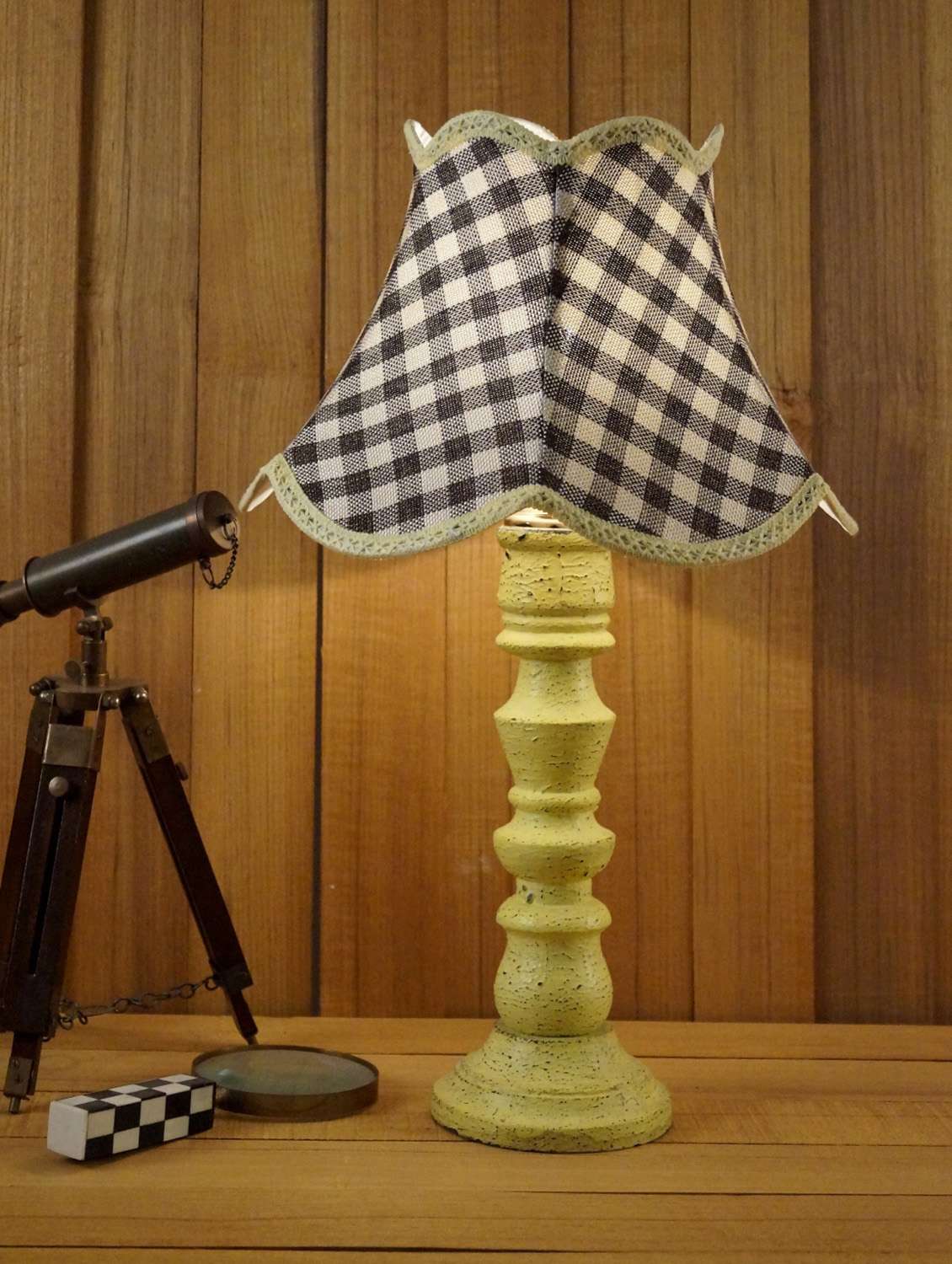 - » vintage yellow mango wood table lamp with jute shade