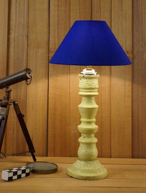 vintage yellow mango wood table lamp with 10" pyramid shade