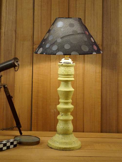 - » vintage yellow mango wood table lamp with 10" pyramid shade