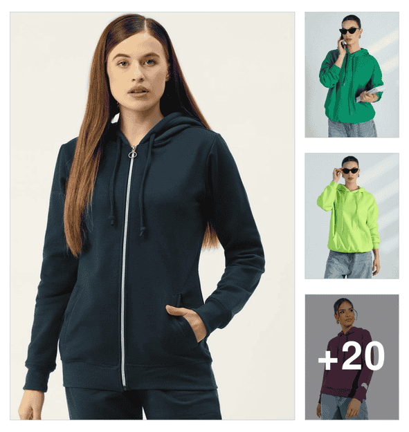 women solid long sleeve hooded sweatshirt